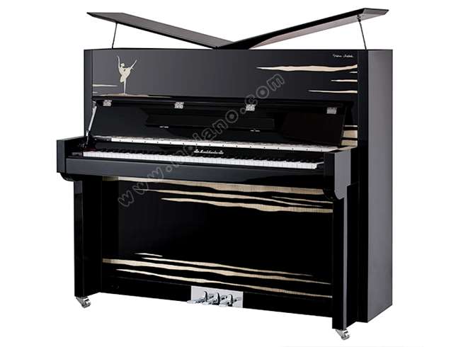 - 黑色亮光主色調中,一位妙齡少女在夜幕下的海灘翩然起舞,唯美的芭蕾、悠揚的琴聲,亦琴亦詩亦畫,舒展的蝴蝶雙翼琴蓋、簡潔流暢的直腿靈動十足。 本款鋼琴是由“當代李斯特”美稱的德國門德爾松鋼琴簽約藝術家弗拉基米爾·莫吉列夫斯基大師親自定音并簽名的高端藝術佳作。