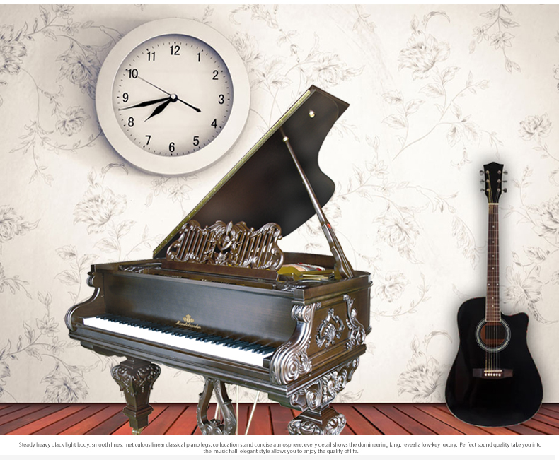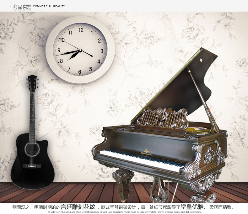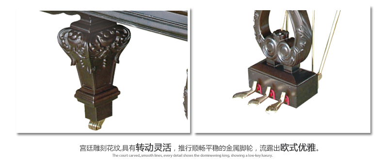 胡桃木材質琴身,采用上等的手工雕刻技藝,明清時期的宮廷雕刻花紋搭配歐式堅琴譜架設計,中西合壁的歷史底蘊使其更具典雅和尊貴的氣質。