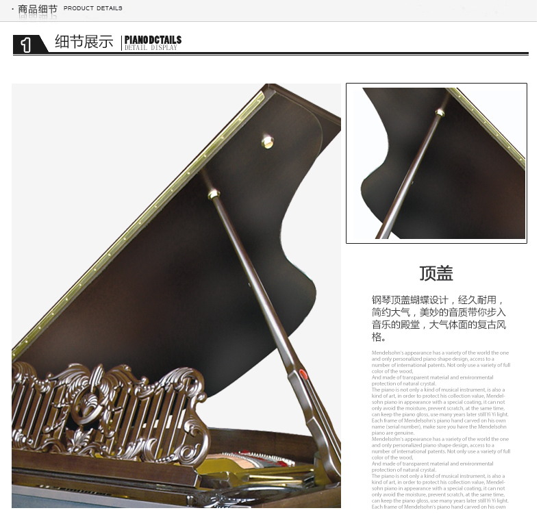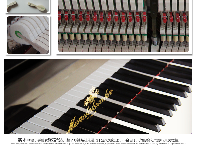 6.鍵盤:歐洲白松實木鍵盤,烏木黑鍵,不易開裂變形,具有很好的觸感