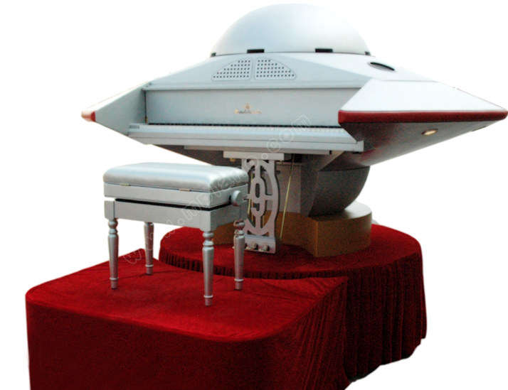 琴身設計:為了紀念中國共產黨成立90周年,德國門德爾松鋼琴公司特地研發了一款外形酷似飛碟造型的概念鋼琴——“ 飛碟 ”鋼琴,寓意著在歷史的長河中,短短的 90年,我國人民在中國共產黨的領導下,生活水平、綜合國力像飛碟般的速度發展著。